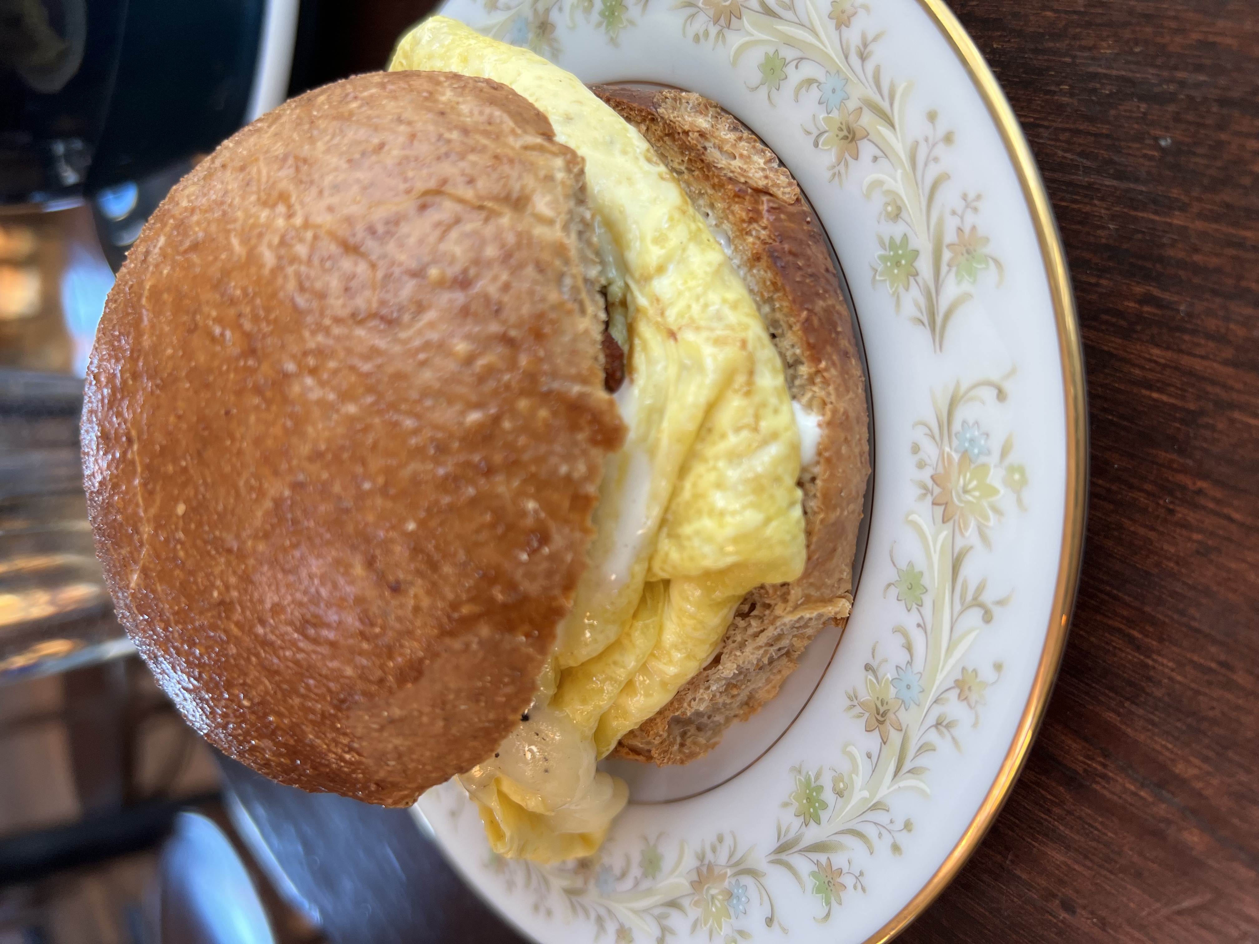 The Briar is an easy cafe to miss. Amidst the quiet neighborhood of Northeast Minneapolis, The Briar stands out with its loud exterior and secretly serves some of the best coffees in the city. I have been hopping around Minneapolis cafes in search of the best work spots, and The Briar is one of the only places I've made a second round to. From the second you walk in, the cafe is very warm and inviting. It feels like a very humble and comfy place. The barista has a warm smile, and the music is soft and soothing. It feels like a cabin. Everything is finished in wood, and everyone is close to each other without being cramped. Distinctly, the menu features not only a coffee section, but also a full bar of cocktails, wines, and draft beers. During the day, they serve sandwiches and limited fresh pastry, offering slightly more variety after 4 pm with an expanded menu. There are four featured specialty coffees. Each features a very prominent, aromatic herb, with all coffees being served with oat milk by default. On my first visit earlier in the week, I went for the Autumn Serenade and a Pork Cutie sandwich. Priced at 7.50, the coffees are a little expensive, but they are really worth it. The Autumn Serenade features house-made molasses brown sugar syrup, rosemary salt, espresso, and oat milk. I essentially saw this as a latte with a twist; however, I was shocked by how much I enjoyed this drink. Sprinkled atop the coffee was a rosemary salt that perfectly blended into every sip I took from beginning to end. It was prominent yet not overpowering, and added an earthiness that balanced well with the syrup. The espresso still comes through and is complemented by a nice oat milk that adds additional depth to the flavor. I have never seen rosemary featured in a coffee, and was very pleasantly surprised to enjoy the drink as much as I did. More recently, I went back and opted for the Holy Hand Grenade, really wanting to explore what else The Briar had to offer after loving my first experience so much. The Holy Hand Grenade is composed of lavender, pomegranate grenadine, espresso, bitters, and oatmilk. Even though I really enjoyed this drink as well, I thought it had a very similar flavor profile to the Autumn Serenade. I didn't have them back-to-back, but the lavender had a very similar earthiness and punchy flavor to contrast the sweetness of the grenadine, making for a delicious, balanced drink. The main difference to me was that the lavender was more incorporated, with less texture in the drink overall due to the omission of salt. While the drinks were delicious, the only gripe I had with The Briar was the sandwich. The Pork Cutie comes on a brioche bun, with house-made porchetta, white cheddar, egg, cornichon aioli, and hot sauce. For nine dollars, the portion was reasonable. To start, the texture of the bread was great. Being slightly toasted gave it a nice crunch while still being fluffy on the inside. The aioli was the highlight, being creamy, rich, and slightly spicy. It added a lot of complexity and balance to the sandwich. The egg was also delicious, being perfectly fluffy and soft. However, I had a small problem with the ratios. The pork was inconsistently spread out. The pork flavor was mild towards the edges of the sandwich, while more of the pork overlapped in the center, making for fuller bites with more prominent flavor that I enjoyed more. Furthermore, I thought the bread had a wheaty aftertaste that I didn't particularly like, but it wasn't a major distraction. Aside from some minor issues I had with the sandwich, The Briar really stands out as an amazing spot for any occasion. The drinks are absolutely worth a stop, featuring great espresso and a unique herbiness that I haven't seen done as well anywhere else. While the sandwich wasn't perfect, it's definitely worth a shot if you're hungry and already at The Briar. Based on my first couple of visits, I am eager to continue working my way through the menu and am excited to try something new on my next visit.
